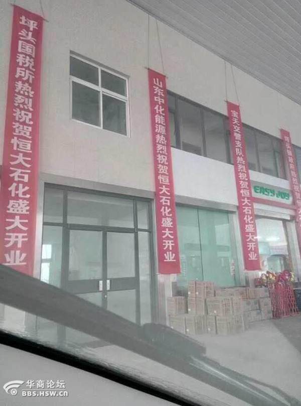 “宝鸡一加油站开业,众多政府部门送来祝贺条幅。”2月6日晚间,有网友爆料称,陕西宝鸡陈仓区坪头镇一家名为“恒大石化”的加油站刚开业不久,墙上挂的条幅却十分惹眼,其中不乏来自宝鸡市政府、坪头镇政府、坪头地税所、坪头派出所等多个政府机关发来的祝贺。