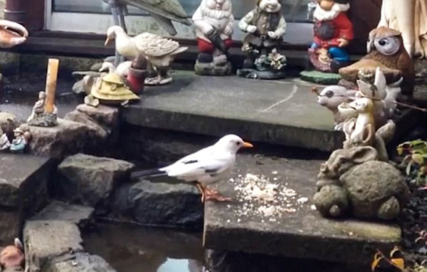 【环球网综合报道】据英国《每日邮报》2月6日报道,英国诺丁汉郡的一对年迈夫妇在自家后院里发现了罕见的白化黑鹂,起初他们还误认为是海鸥。这只黑鹂每天都会到他们的花园里觅食、清洗自己。