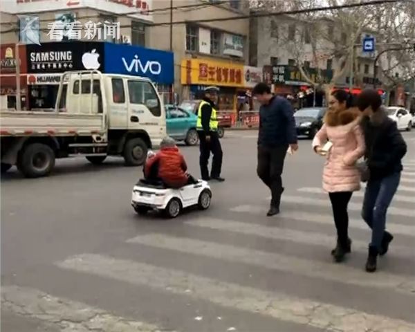 还好是遇上了巡逻的交警,不然后果不堪设想,交警提醒:玩具电动车可以买“路虎”的,看孩子这件事儿可不能“二虎”。