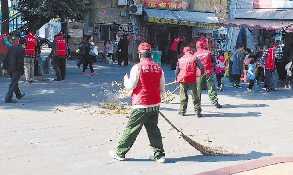 在服务队成立仪式上,42名白发苍苍、身穿红马甲的老兵志愿者们现场开展了春节爱国卫生志愿服务活动,他们个个精神饱满、身手敏捷,手持扫把、垃圾钳、垃圾袋对广场进行了大清扫。